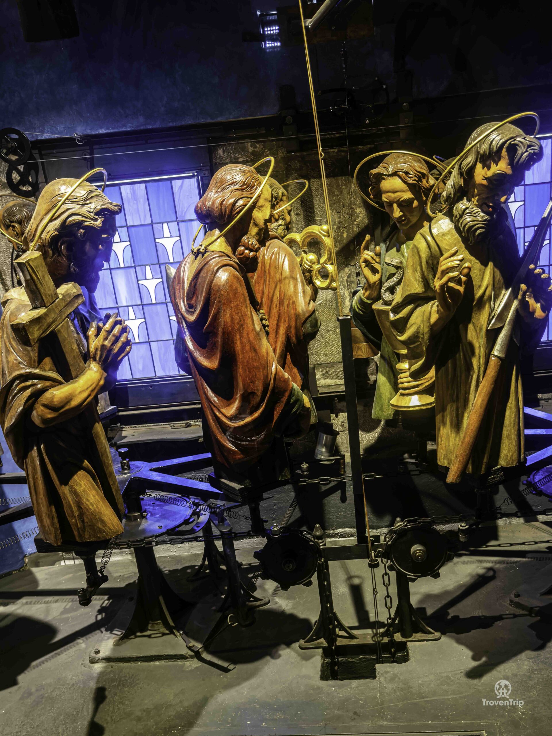 We see the grand rooms used for the council and political meetings back in the day though, see the chapel, and we see the Apostle figures from the Astronomical Clock from the inside as they sit and wait patiently for their next hourly show.