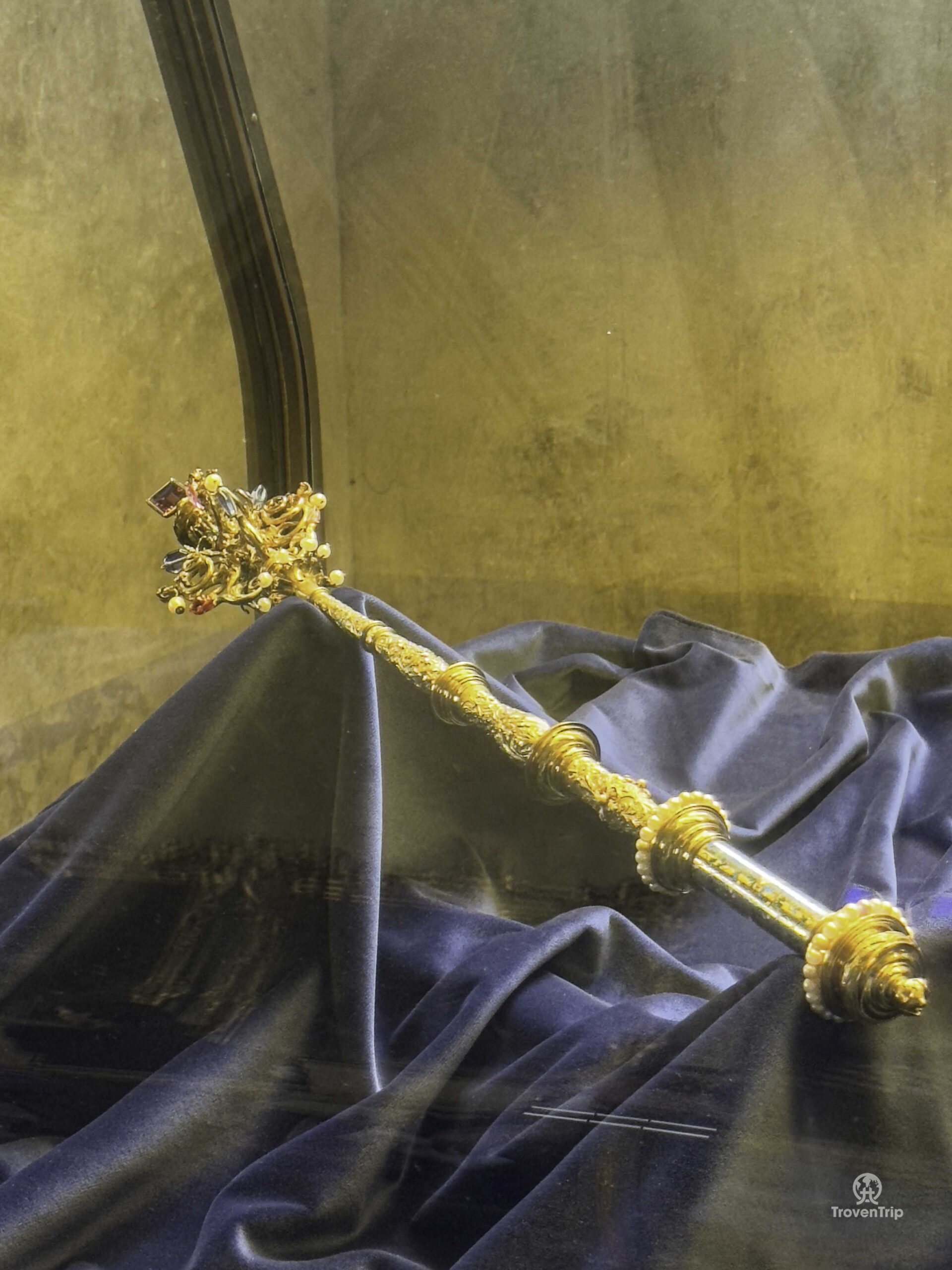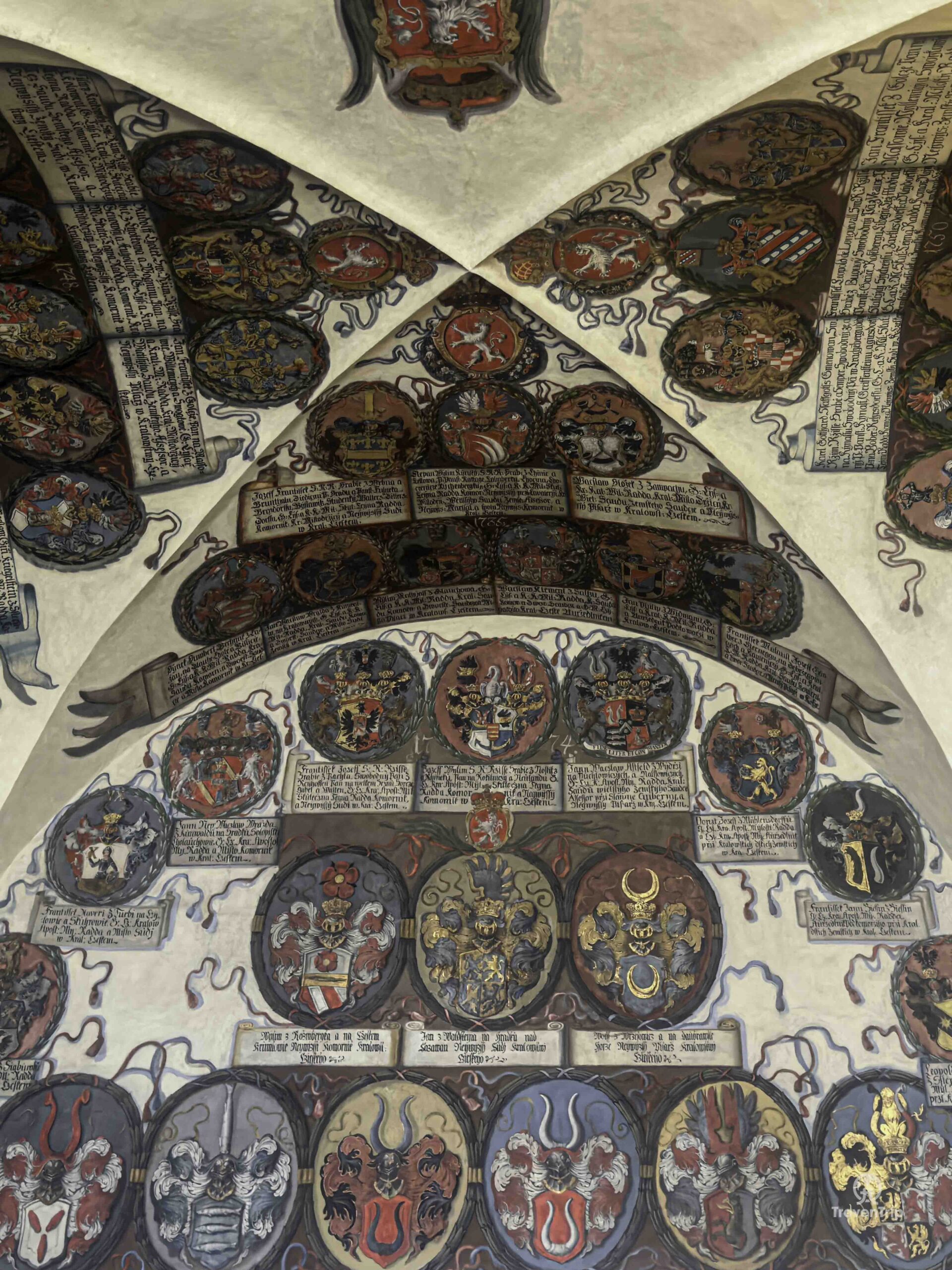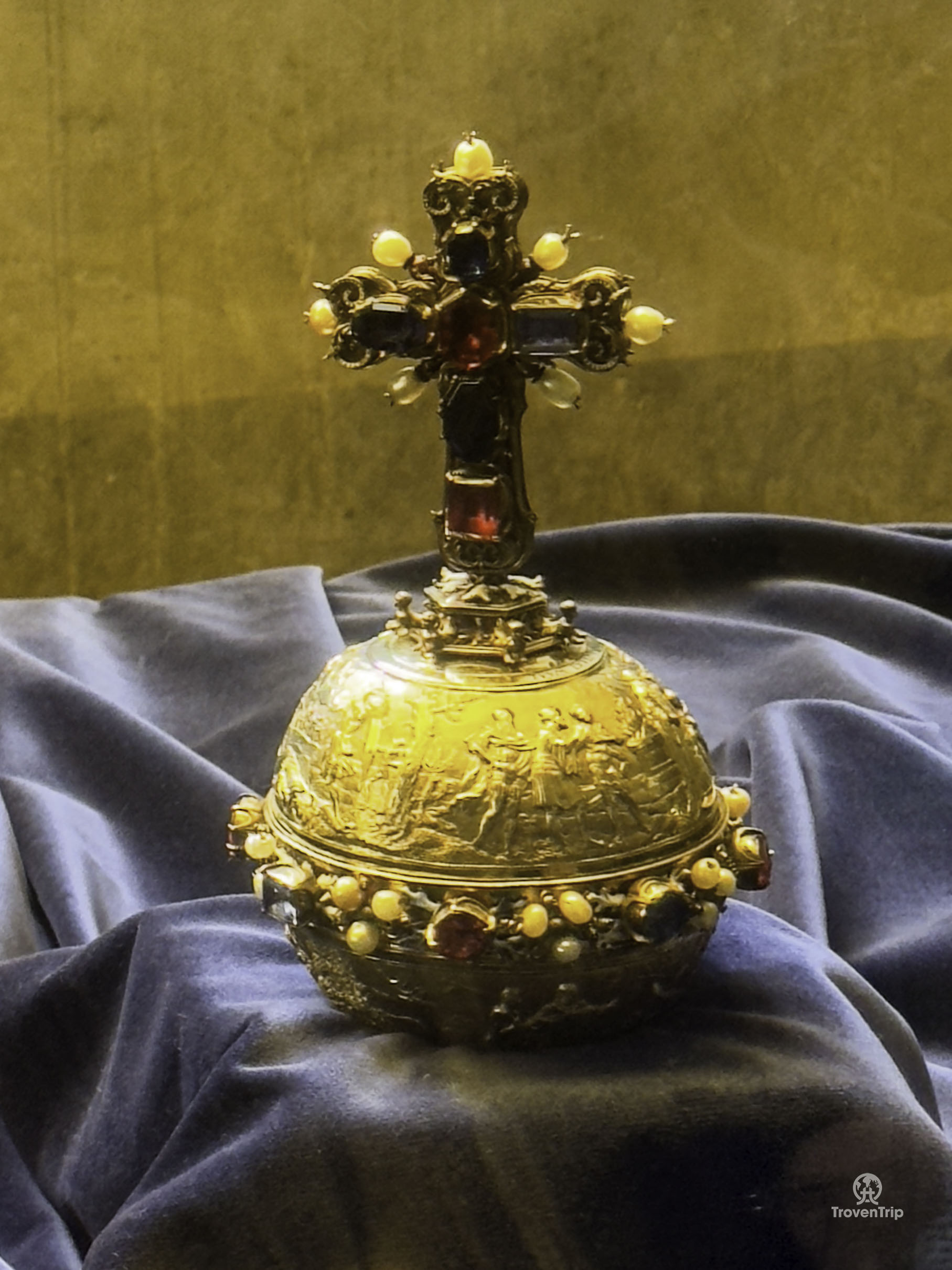 Inside we see the Czech Crown Jewels… the Crown of St. Wenceslas, the royal orb, and the sceptre. Vladislav Hall is a massive Gothic hall where the coronations were held. And the Bohemian Chancellery, where thousands of scrolls about Czech laws were destroyed during a fire in 1541.