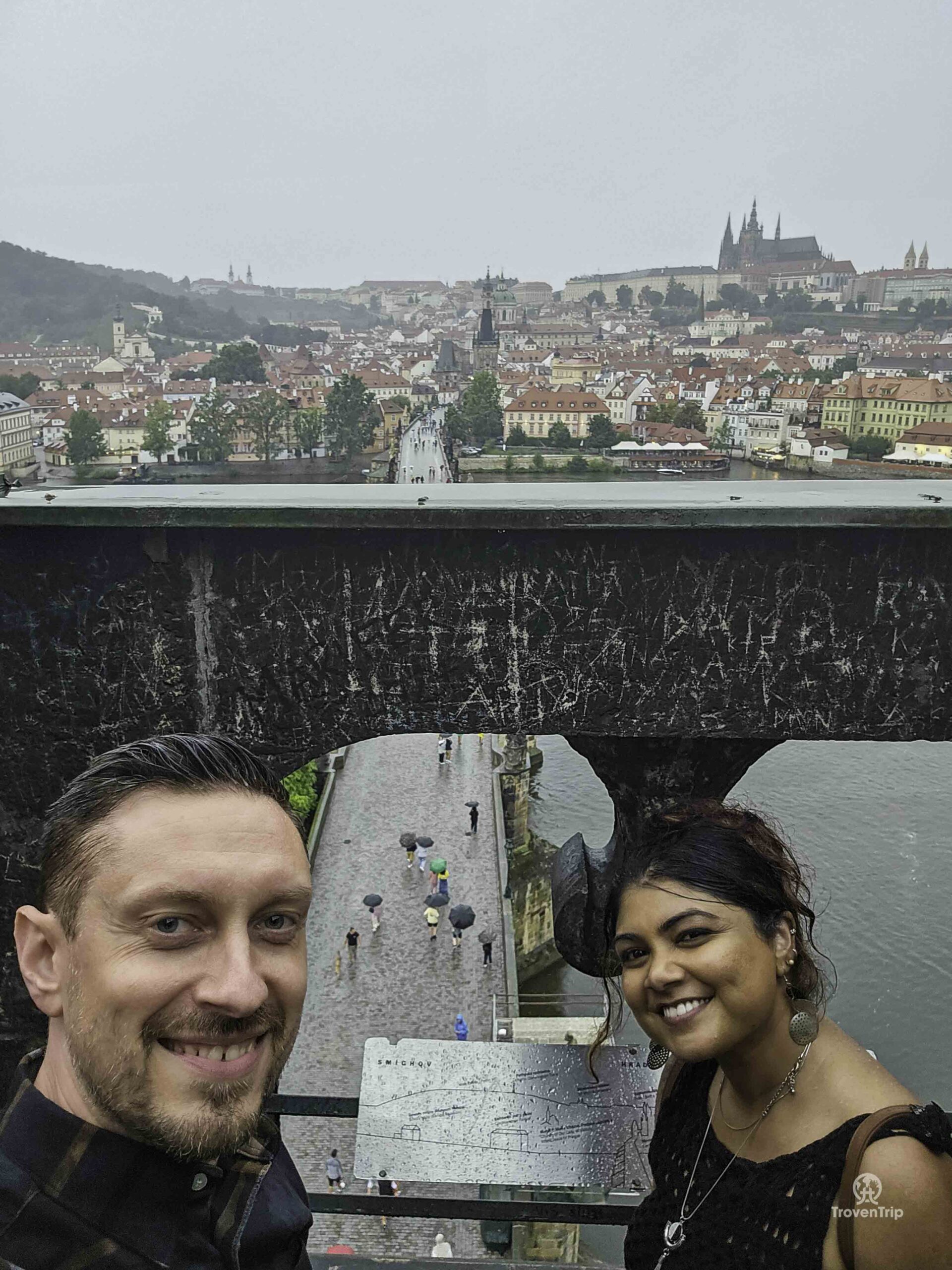 We make it to St. Nicholas Bell Tower which is one of the highest viewpoints in Prague, but we don’t get much of a view due to the rain.