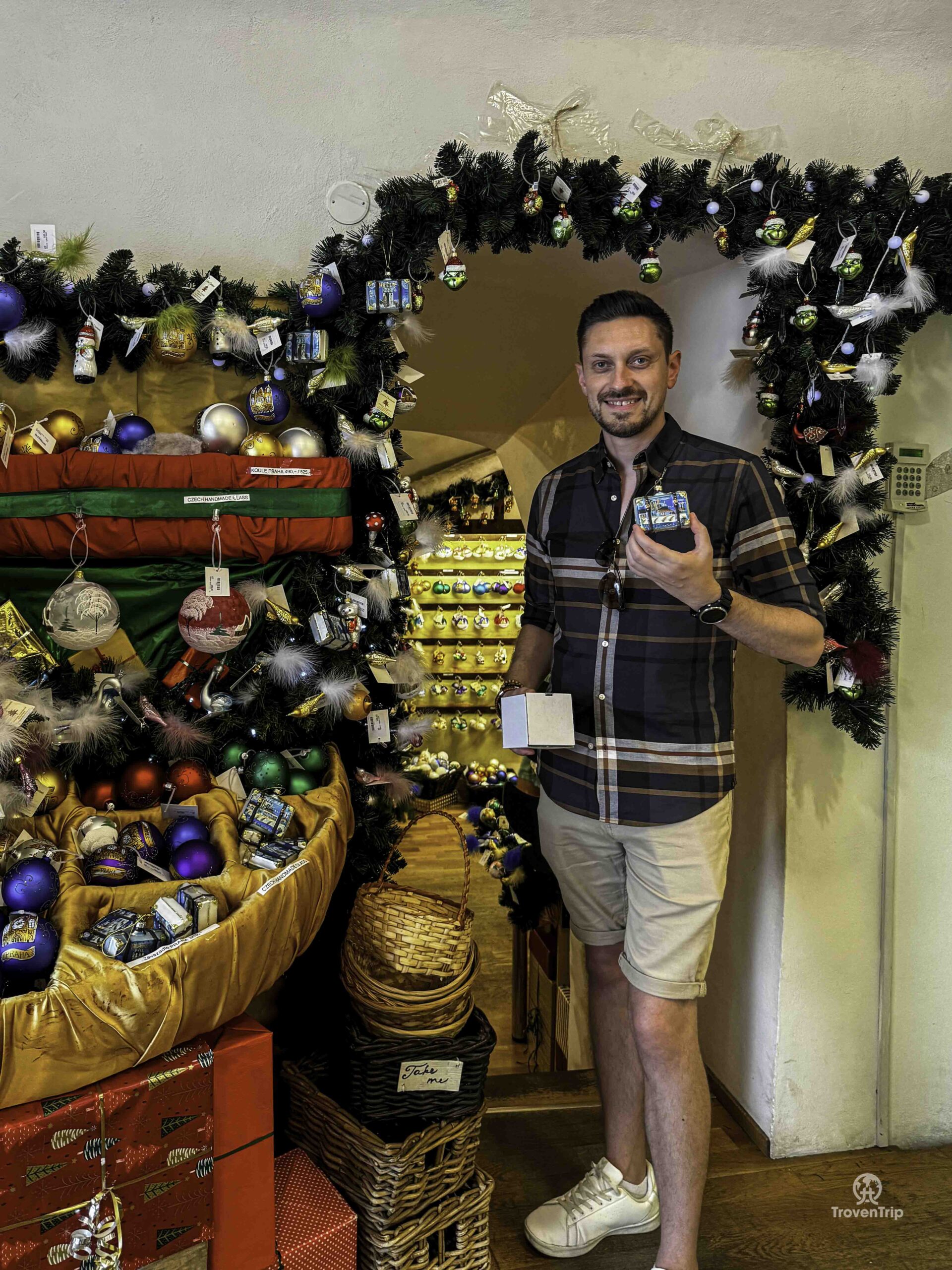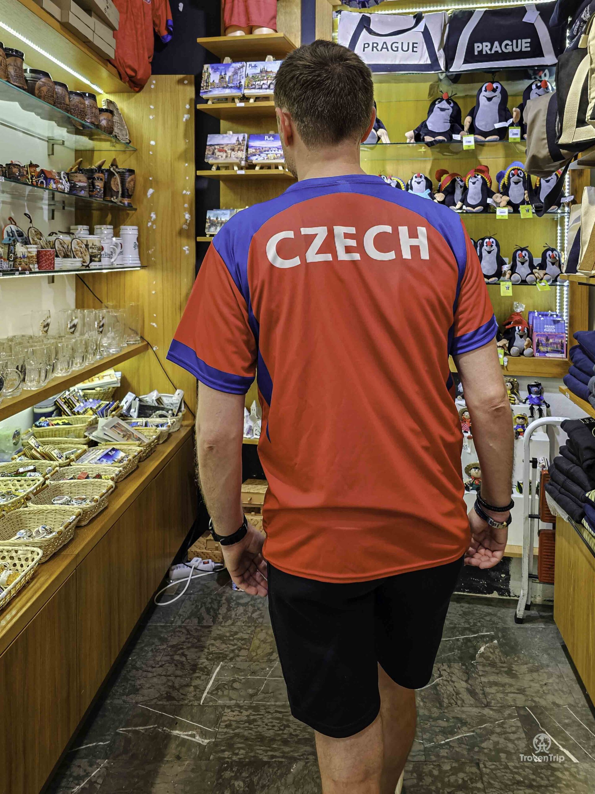 Most of the shops are very similar with their range and price for general souvenirs though. Paul found a truly authntic Czech Republic football shirt in one shop, and in Prague Castle there's a Christmas shop.