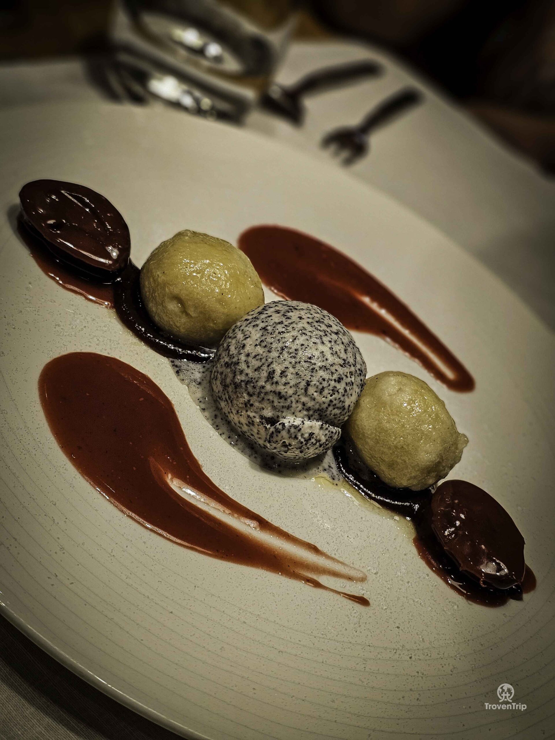 We had the veal schnitzel and Svíčková which were both really good. But it was the dessert which was the most unusual thing we tried… curd dumplings with plums and poppy seed ice cream. “Different” is how we’d describe that!