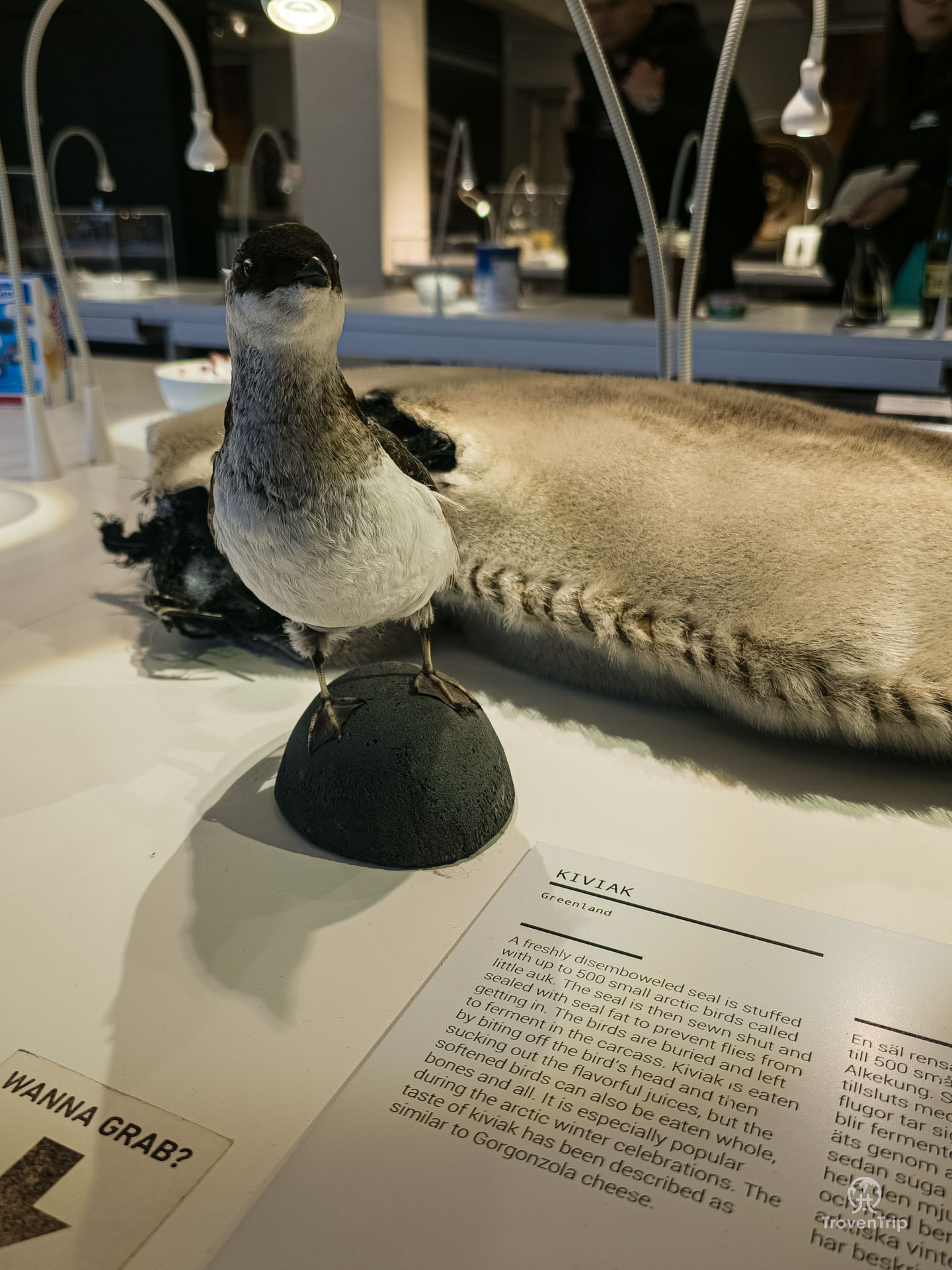 Or one of the strangest things in the whole museum… Kiviak from Greenland. Disembowel a seal, stuff it with up to 500 small birds, bury them and let them ferment, and then bite their heads off and suck out the “flavourful” juices?!