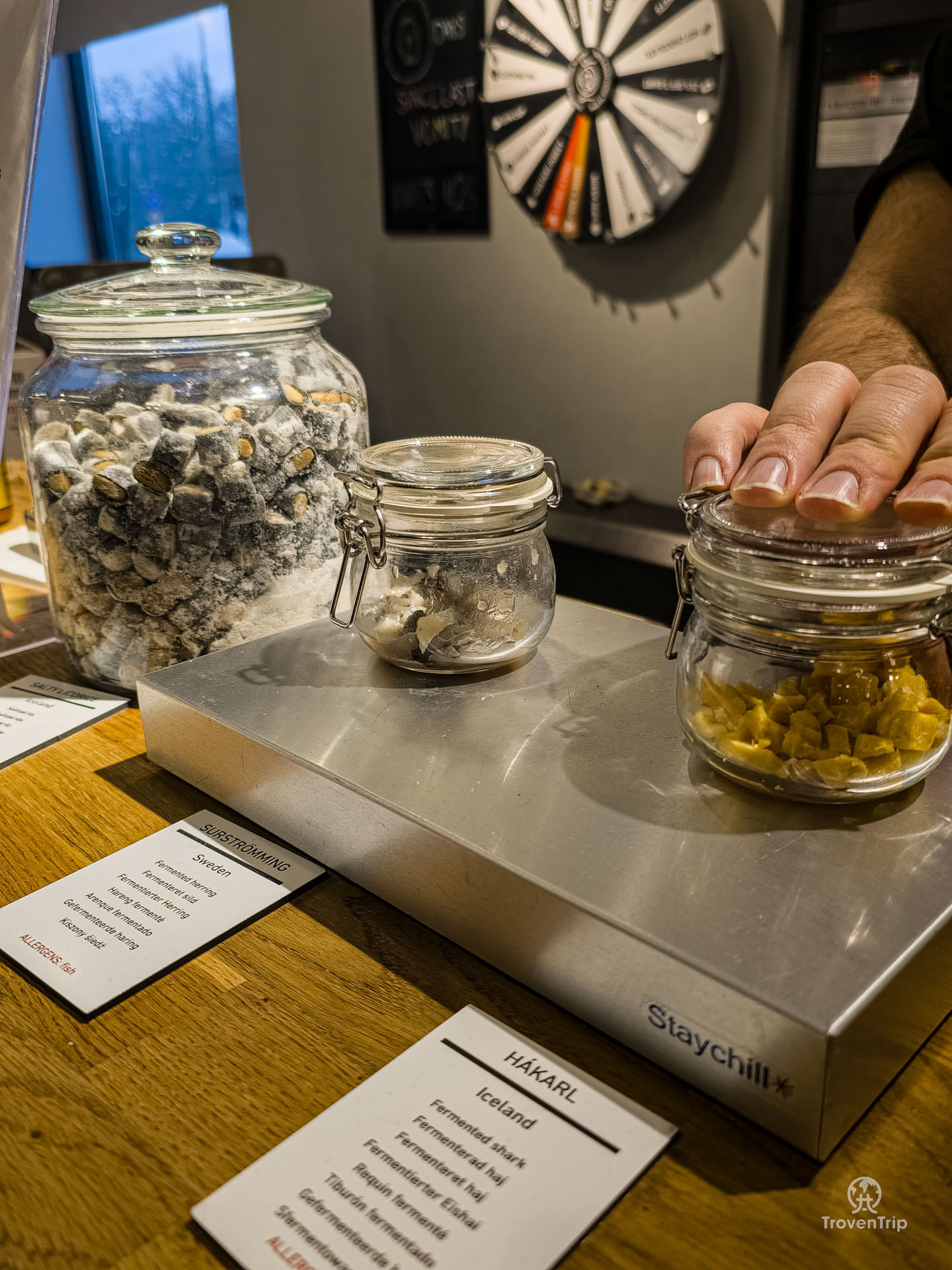 More local smelly foods we get to “enjoy” are Hákarl, the Icelandic fermented shark which is pretty stinky, and Gamle Oles Farfar, a Danish cheese which was actually ok.