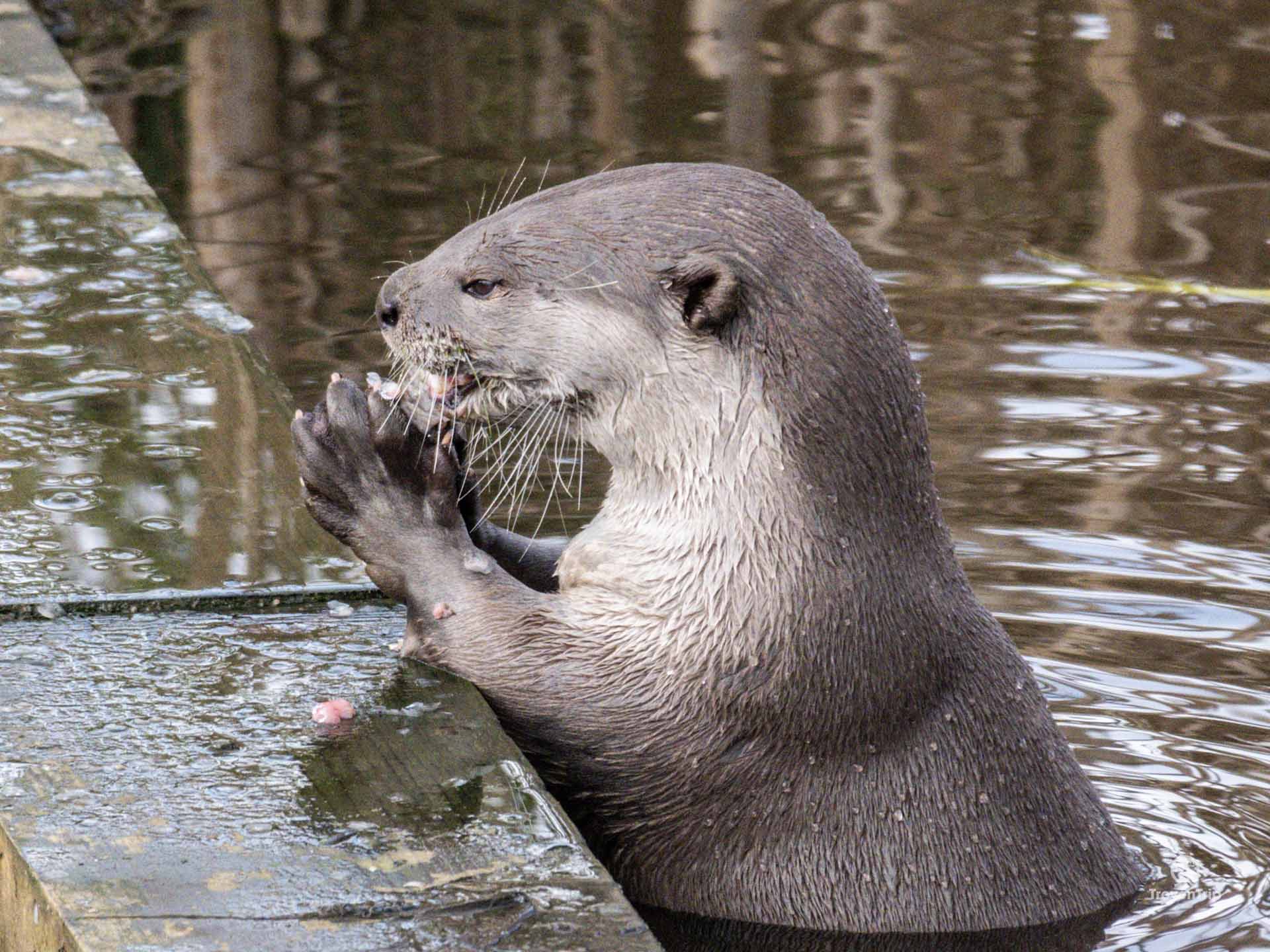 Until it’s breakfast time that is, as when the food is put out, it comes out to feed and joins the otters playing and having breakfast in the pool in the same enclosure.
