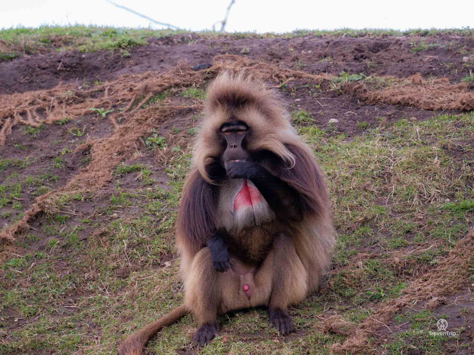 One of the Red Pandas does wake up to stretch, but it soon curls back up, so we move on to Ethiopia and the nearby monkey enclosure.