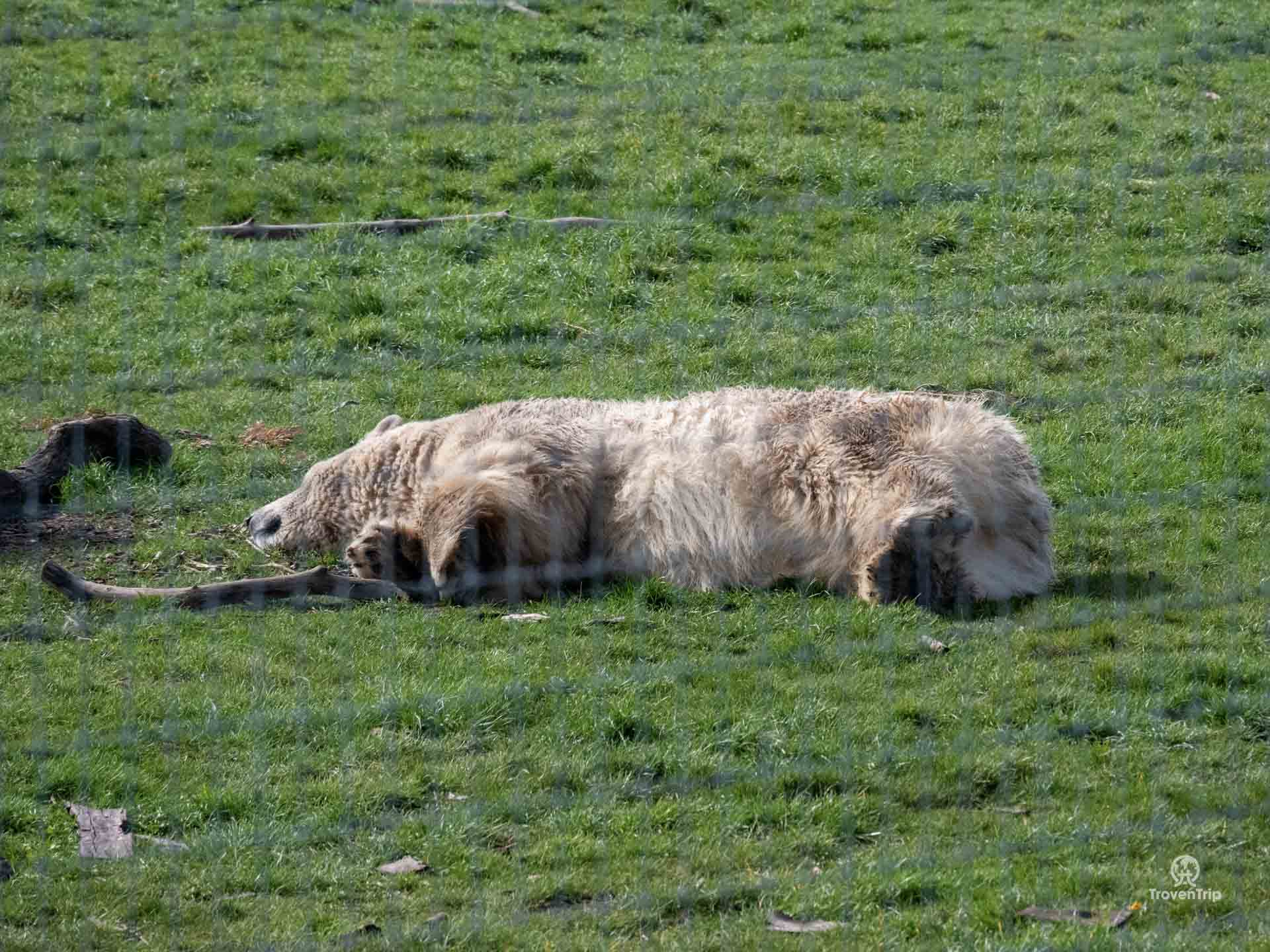 There is one absolutely huge bear alone in one enclosure, we guess it must be a male, and he seems very interested in what's behind the wall which he can obviously smell but not see beyond.