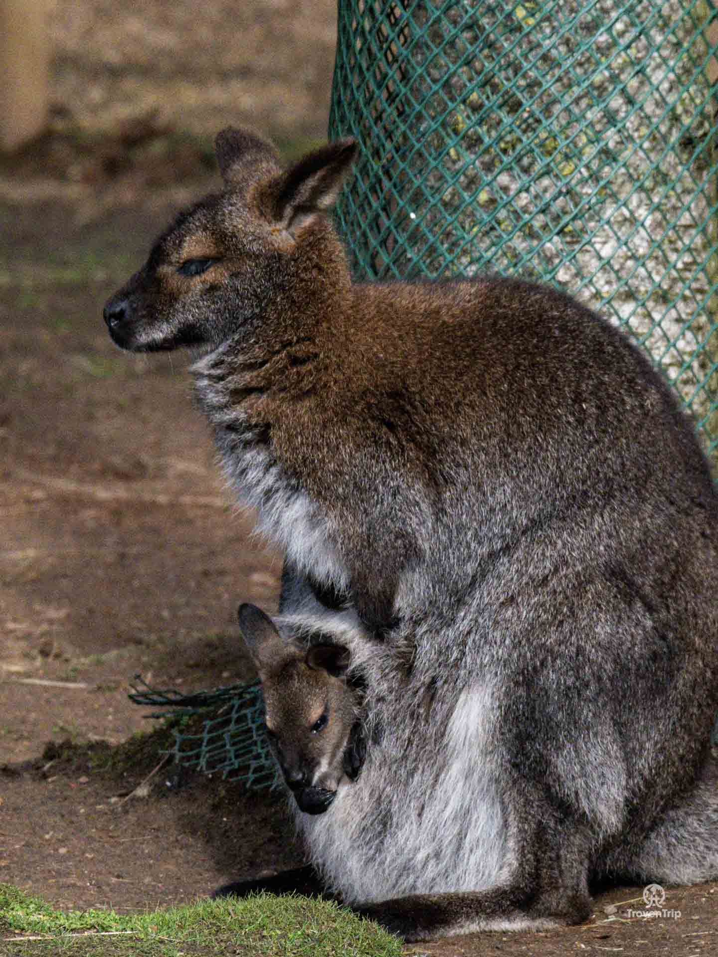 In the Wallaby Walkabout area, we have to pass through some "airlock" gates, and once inside we can see why... the wallaby's are free to roam around the whole area as we walk through it!
