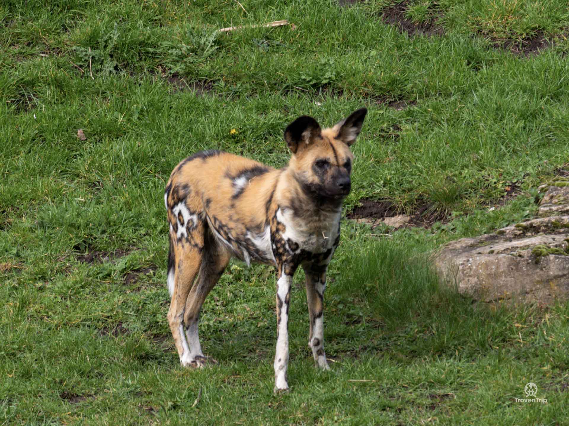 The African Painted Dogs are very curious at all of the people stood looking at them, and some of the dogs look like they want to come out and play with (or eat) us!
