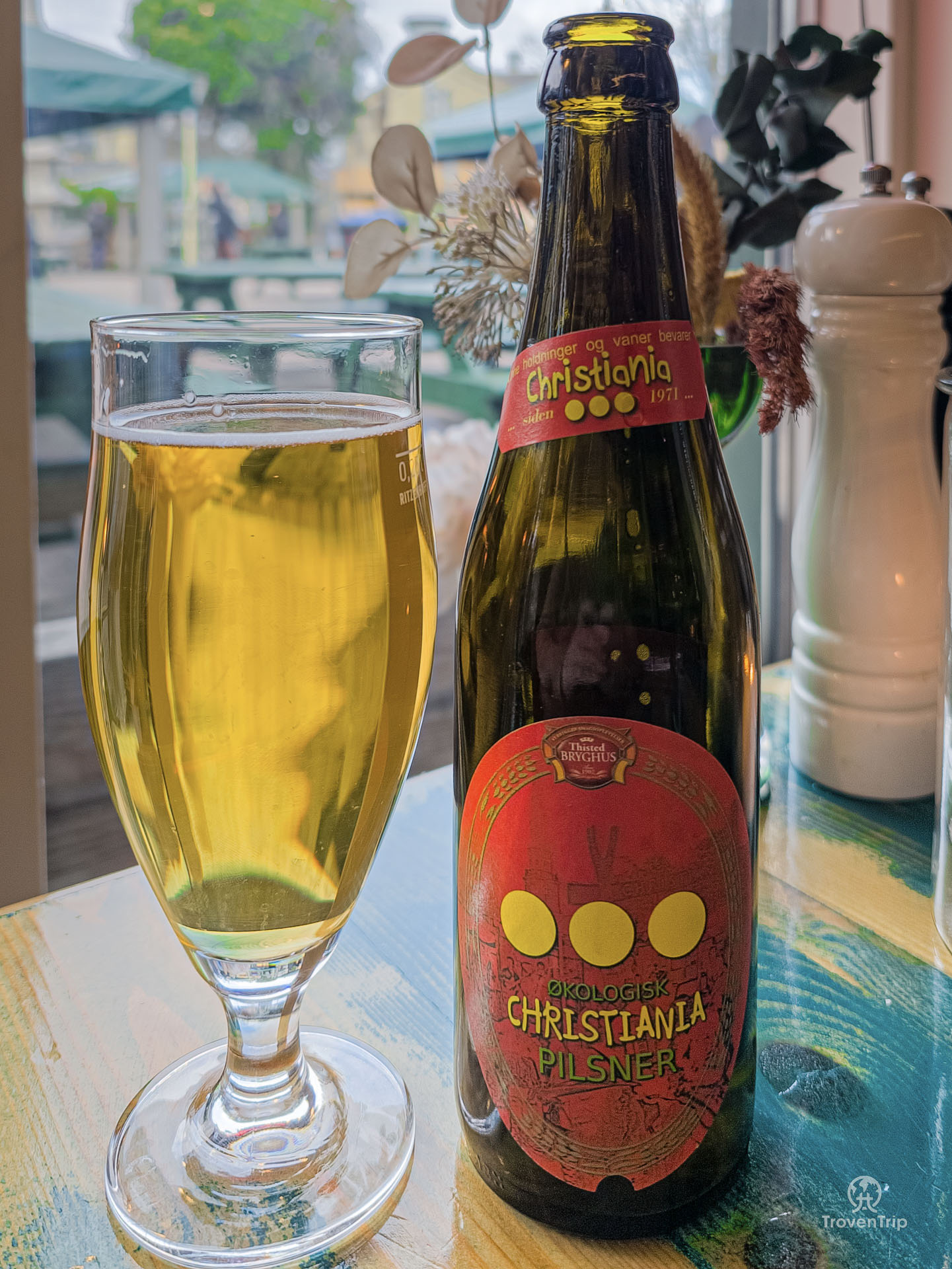 We both get the local Christiania beer to try while we look at the menu, and it’s nice, crisp and refreshing.