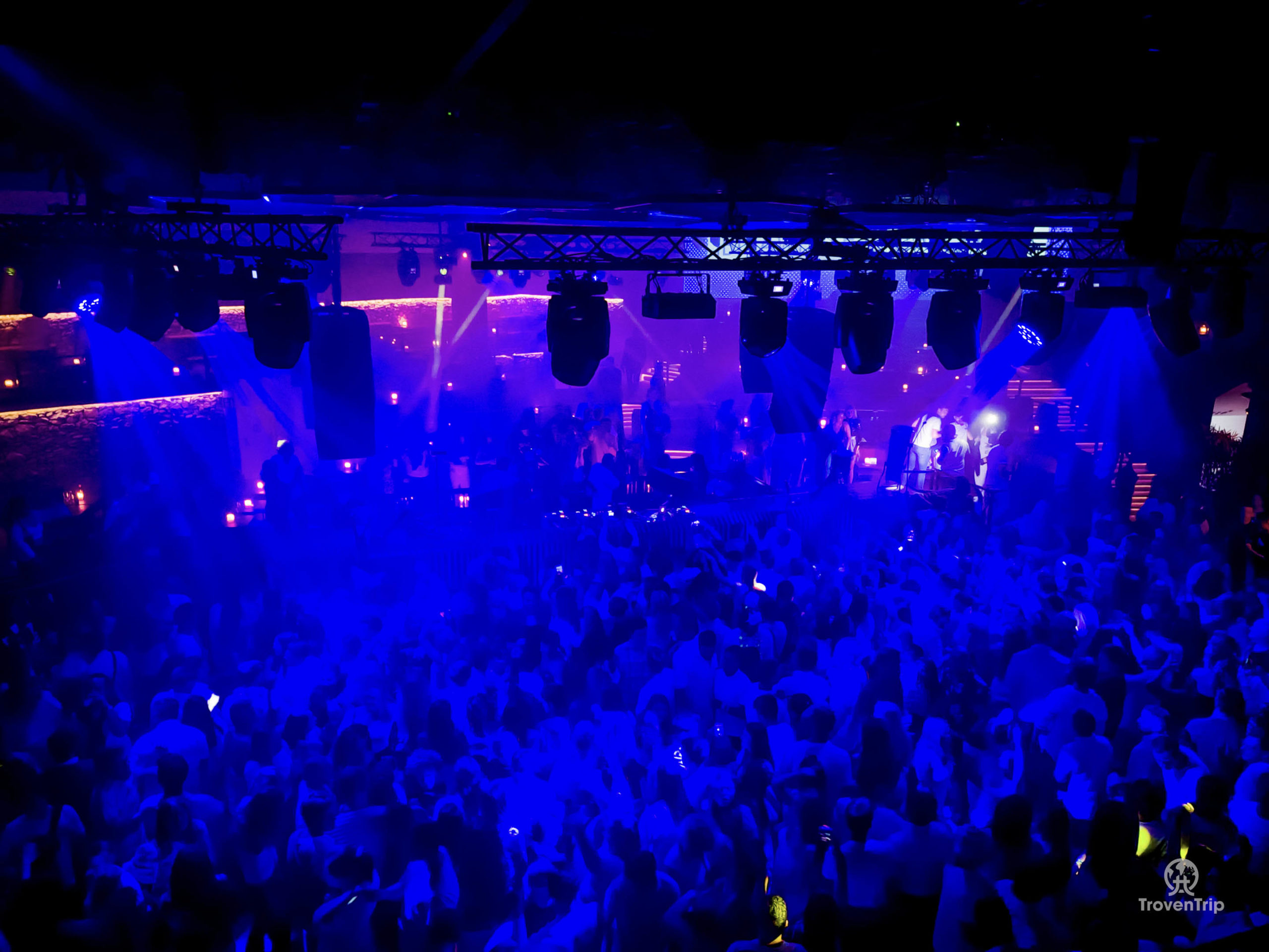 It’s a taxi back to the opposite side of the island and as we get out and all meet back up, the club looks amazing from the outside! We go inside and the entrance goes into a small courtyard area, followed by entering the club past the famous cherries into a very swanky and posh looking club… I’m not sure what I was expecting, but not this!