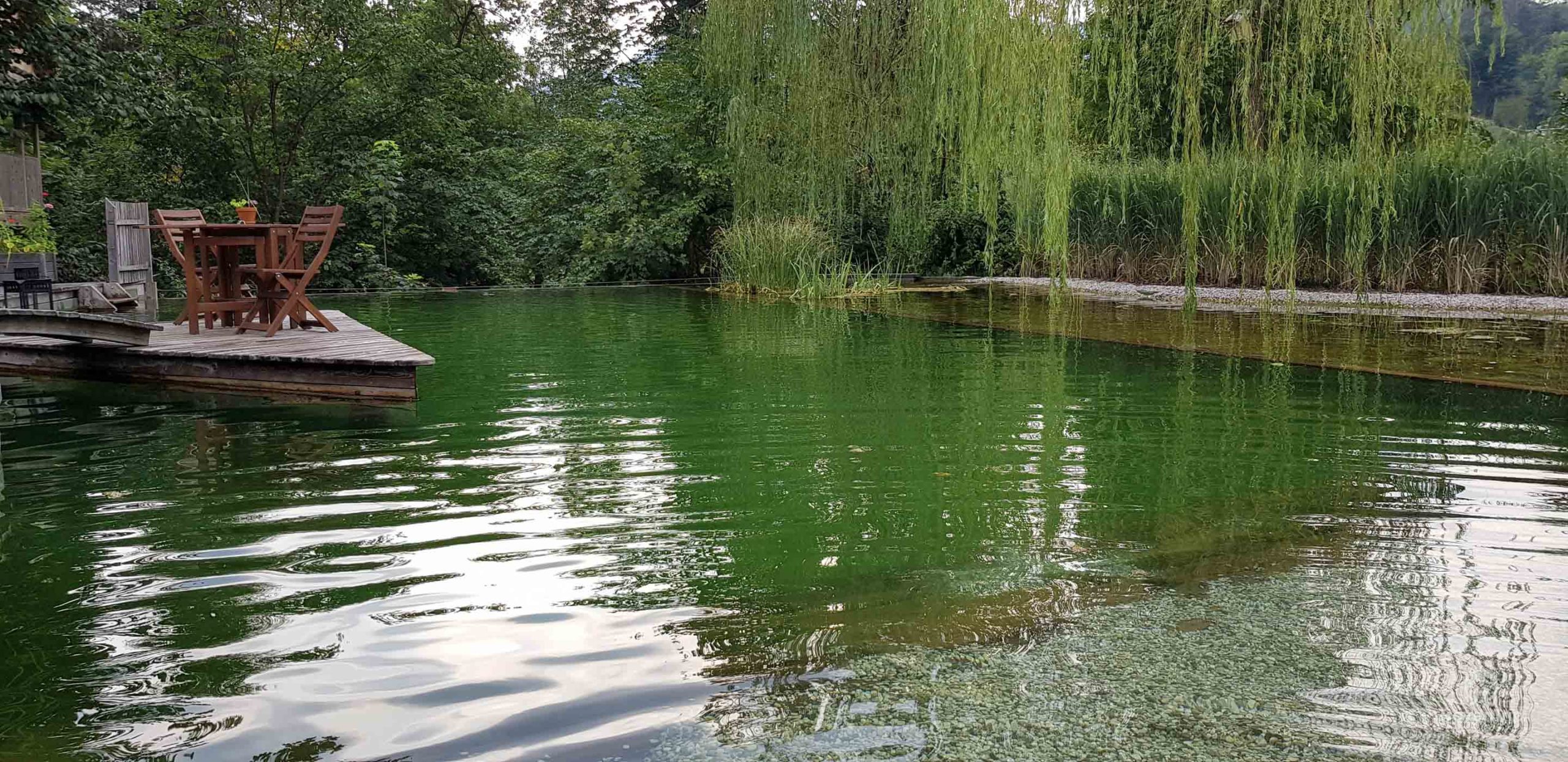 The whole place has been designed with nature in mind and it’s an incredible experience… from the restaurant serving local fish caught in the lake and vegetables grown on site, fruit trees lining the paths where you can pick and eat the apples straight from the trees, to the natural pool filled with fresh spring water where you can have an invigorating swim.