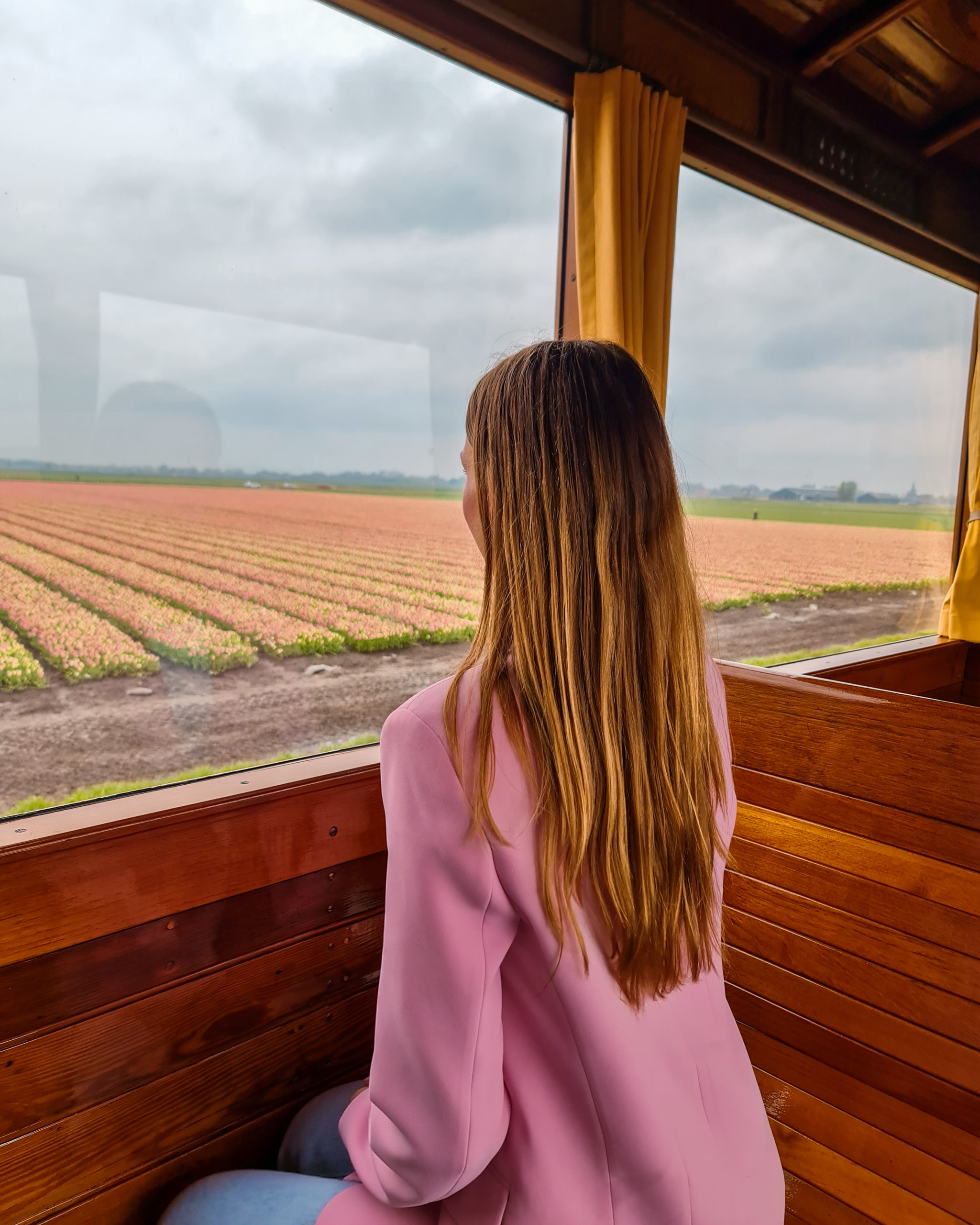The historic steam tram of Museumstoomtram in Hoorn is a unique way to explore the tulip fields in the Netherlands.